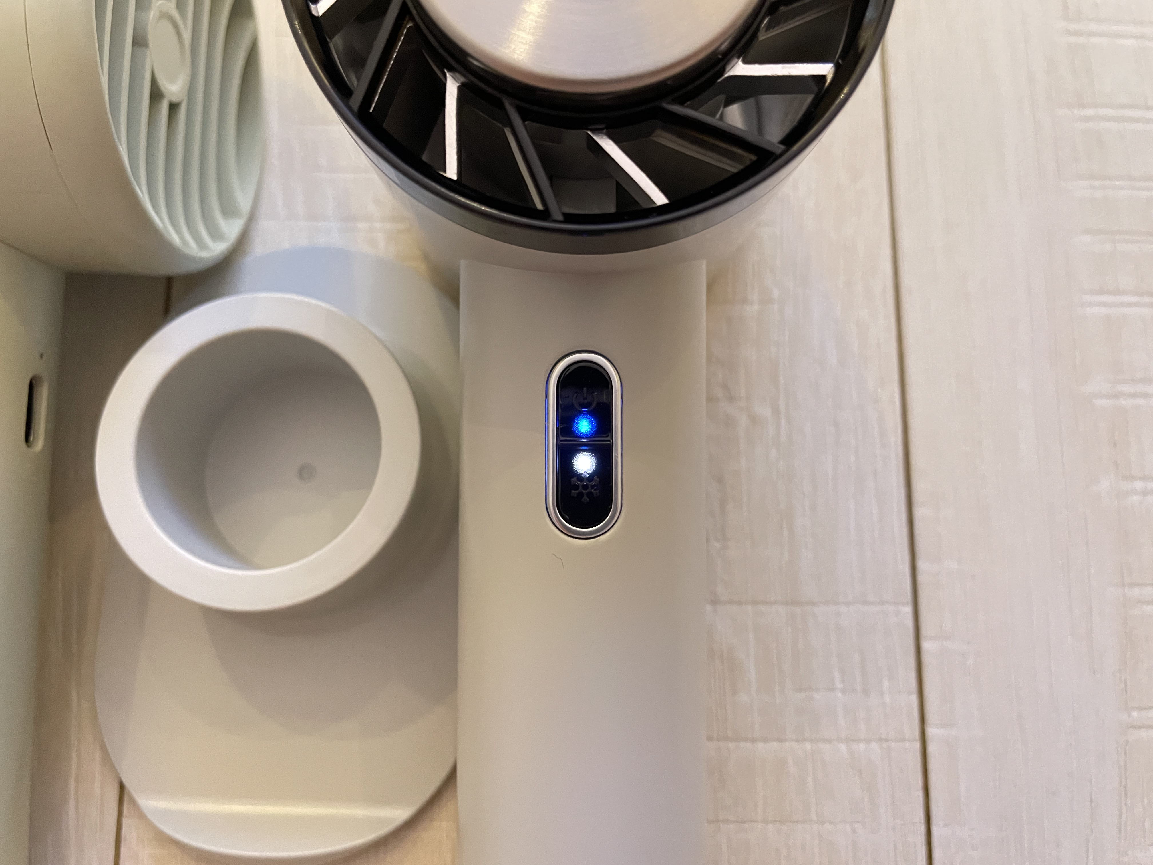 선풍기 가운데에 있는 저 동그란 금속 판이 정말 버튼 누르자마자 차가워진다.