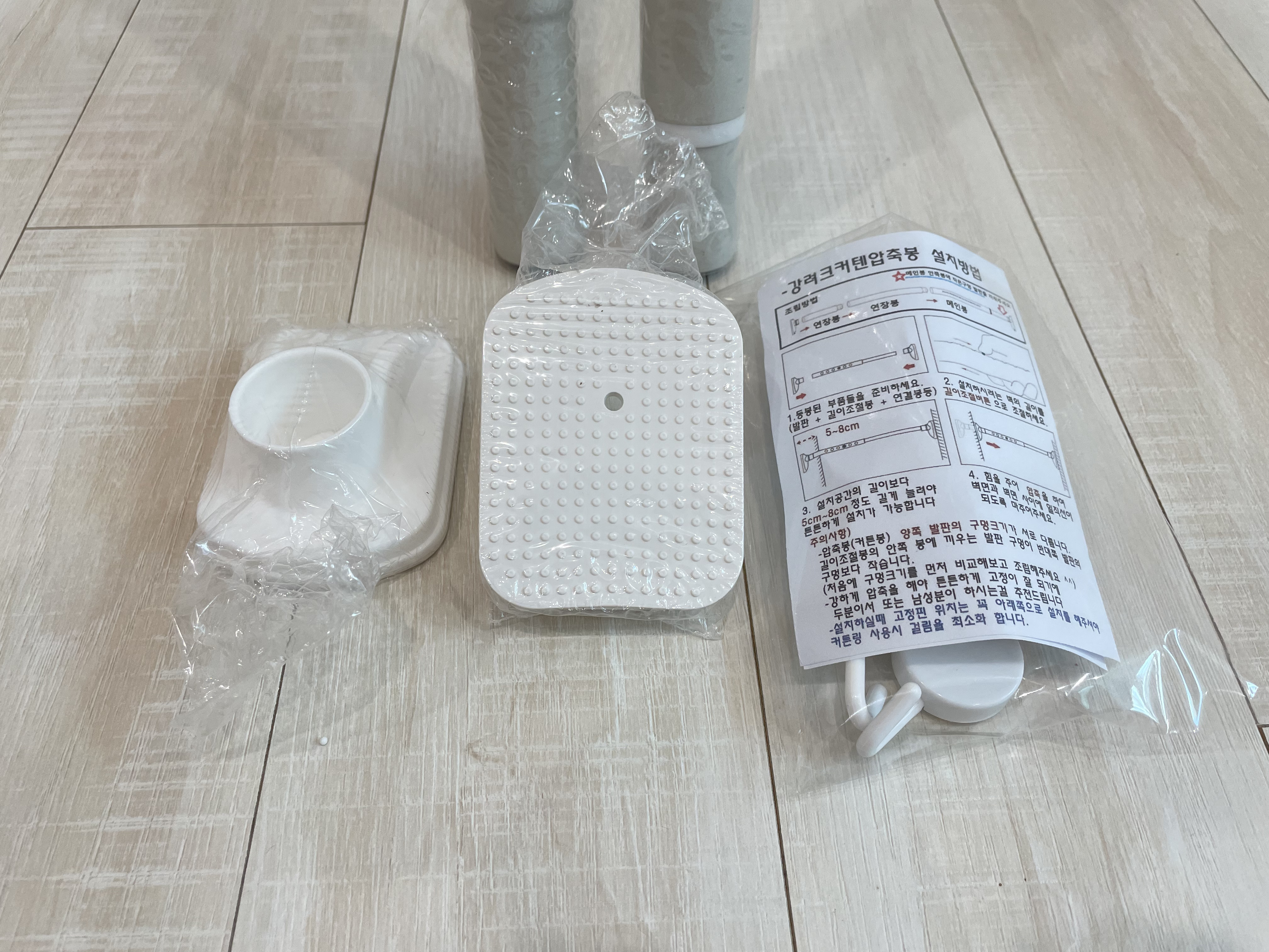 압축봉 두 개랑 발판 두 개, 설명서랑 부착형 고리 사은품 몇 개.