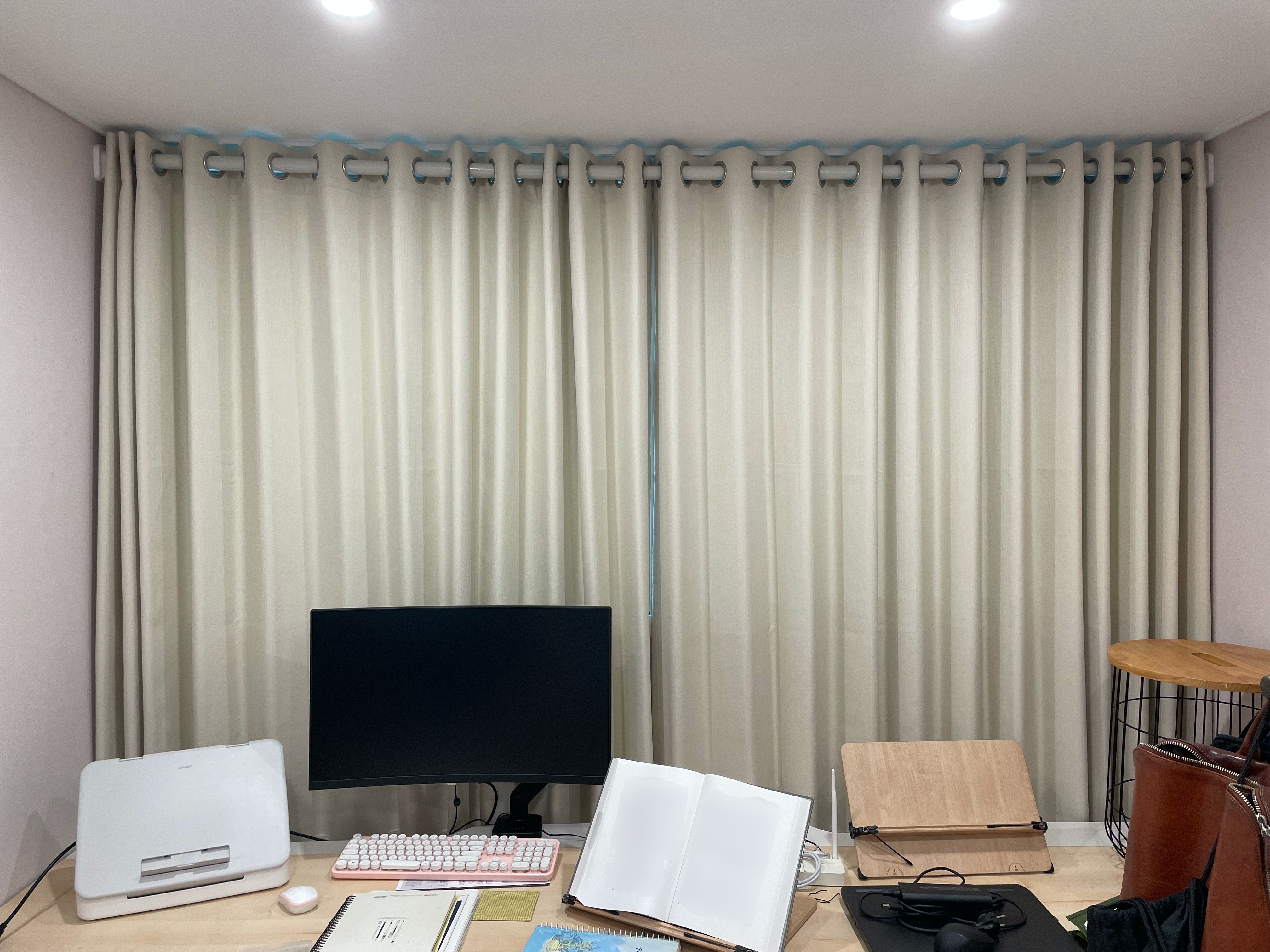 휑하던 창문에 커튼 설치를 마지막으로 드디어 서재방 정리도 마무리했다.