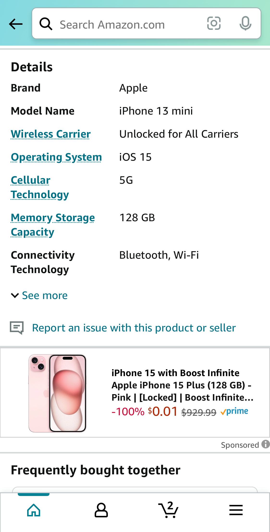 Apple IPhone 13 mini Midnight, 128GB, Unlocked, Amazon Renewed, A2481