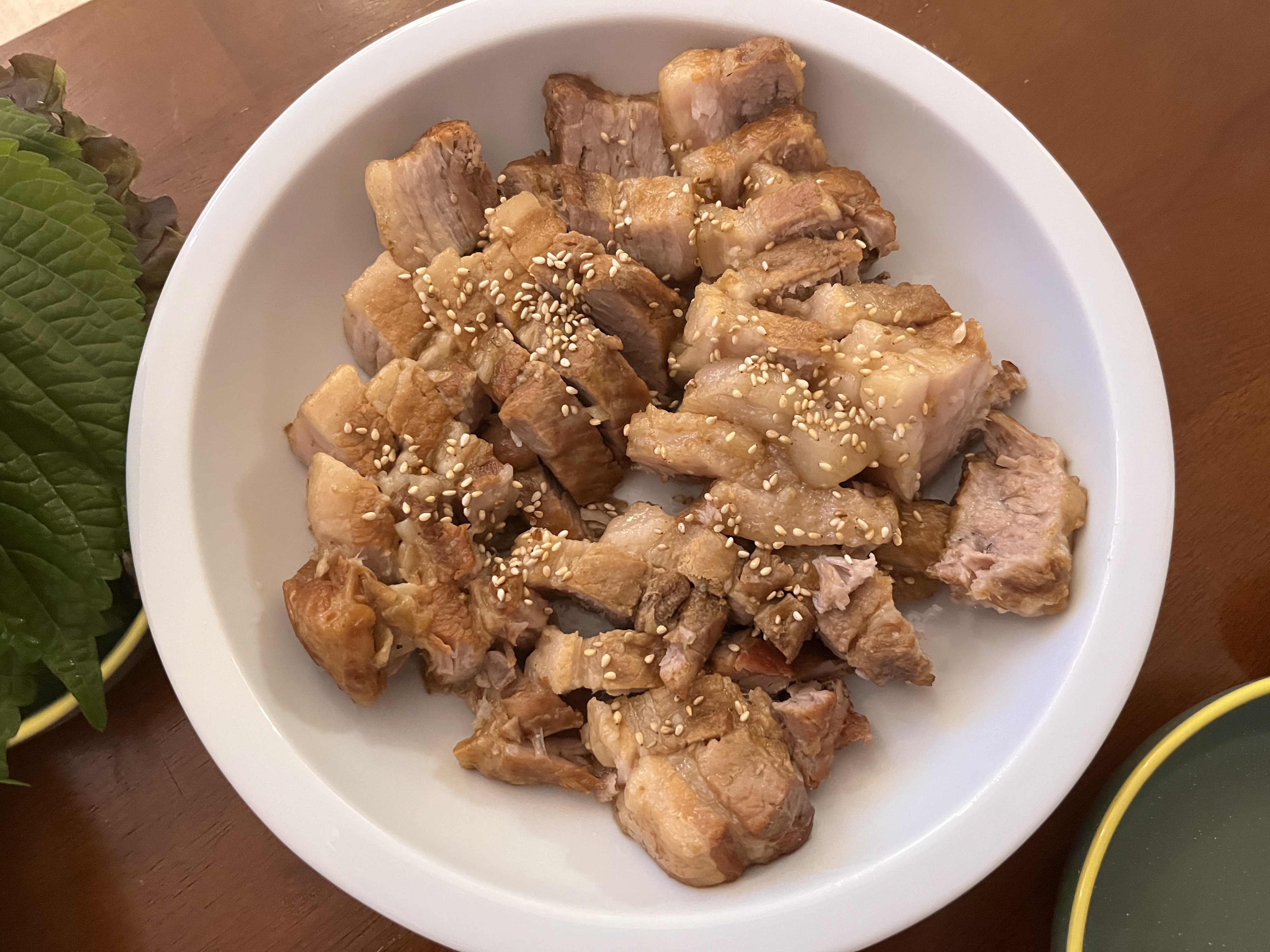 살코기와 기름이 적당하게 섞인 수육용 삼겹살로 큰 거 두 덩어리 준비했다.
